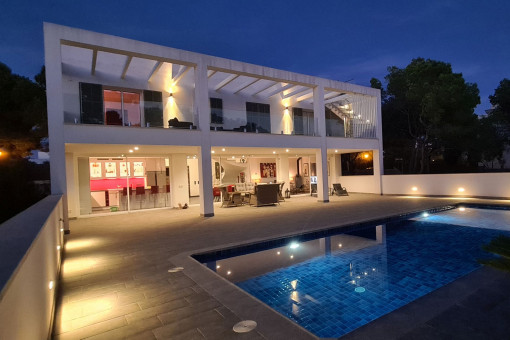 Highlights include a spacious rooftop terrace with multiple uses, a private pool, and a well-designed lighting concept both indoors and outdoors.