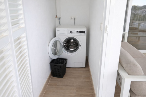 This modern apartment is offered for seasonal rental and is located in a central area of Cala d’Or, in a quiet residential neighborhood with direct views of the harbor.