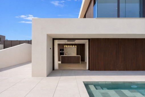This newly built villa in Cala Millor represents clean architectural lines, high-quality materials and a carefully considered design that conveys a sense of calm. The setting is pleasantly private, while the sea can be reached on foot in approximately 15 minutes.