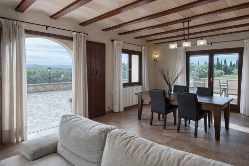The house was built on the highest point of the plot, which opens up impressive panoramic views over the land as far as Puig de Santa Magdalena to the south. The elevated position not only guarantees a wide view, but also a special tranquillity and exclusivity.