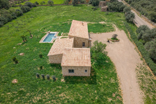 The single-storey finca, with approx. 235 sqm of living space, was created as a heartfelt project and impresses with its traditional, well-thought-out construction. The layout clearly separates living and sleeping areas, while the open-plan living, dining and kitchen area flows seamlessly. Large windows open to the south onto the terrace, garden and pool. The covered porch provides an ideal transition between indoor and outdoor living, allowing year-round enjoyment. The plot of approx. 16,341 sqm is fully enclosed.