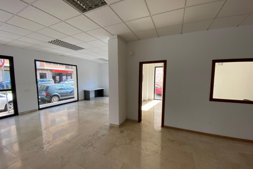 This attractive commercial property is located in the city center of Manacor, directly on a busy street. Thanks to its ground floor corner location and large window fronts on two sides, the property offers excellent visibility and plenty of natural light. The main entrance faces the main street, ensuring optimal customer traffic.