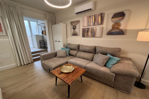 This freshly renovated ground-floor apartment is located on a quiet side street in Porto Cristo – just 2 blocks from the beach – and features its own private entrance. Upon entering, you are welcomed by a bright living and dining area. From here, you access the separate “cold kitchen”, ideal as an additional prep space with room for a small coffee setup. The main kitchen for daily cooking is located on the upper level and connected via a practical serving hatch.