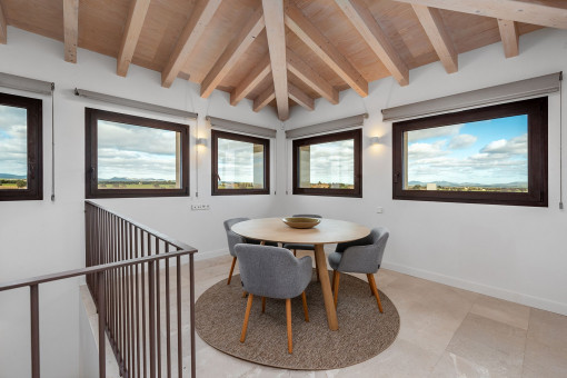 The finca offers a spacious living and dining area with gallery and stylish library. There are a total of 4 bedrooms, 4 bathrooms en suite and a guest WC. The fully equipped kitchen with cooking island is located at the rear of the dining room on the first floor. Large sliding glass doors provide light-flooded rooms and direct access to the terrace.