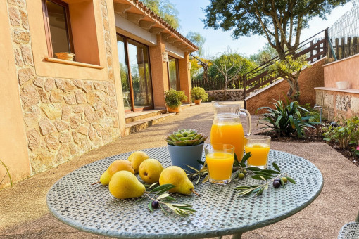 This charming finca is available for long-term rent and is situated in a quiet setting near Sant Llorenç des Cardassar. The property offers approximately 140 sqm of constructed area and sits on a plot of around 735 sqm with fruit trees that give the surroundings a distinctly Mediterranean character.