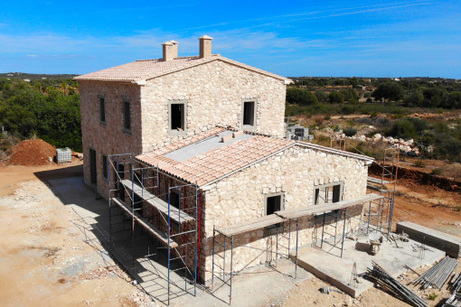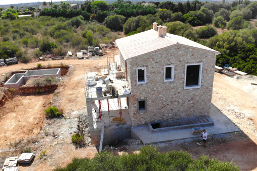 This impressive finca project with classic Mallorcan character and modern accents rises on a spacious plot with absolute privacy. The house offers a living area with 4 spacious bedrooms, each with its own bathroom en suite, as well as a separate guest WC. All rooms are flooded with light and are oriented towards the landscape - for a living experience in harmony with nature.