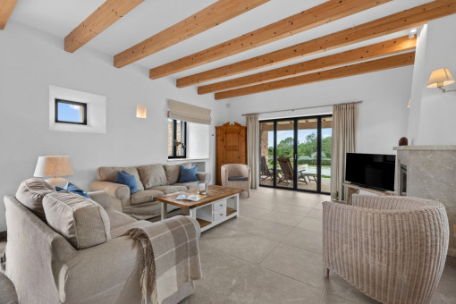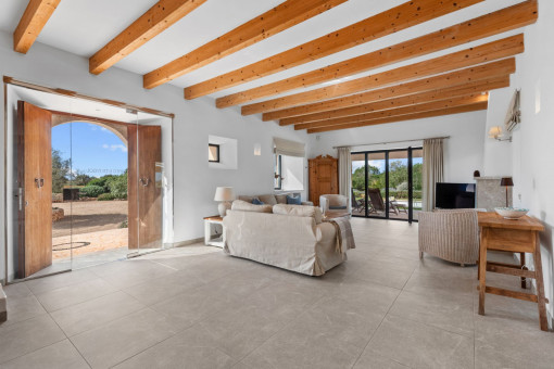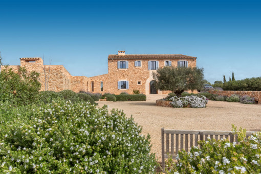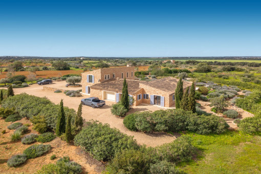 This enchanting natural stone finca is set on a spacious plot of approx. 14,200 sqm and combines Mediterranean charm with modern living comfort. Surrounded by unspoiled nature, you can enjoy breathtaking 360-degree panoramic views thanks to the floor-to-ceiling windows - a place where peace and space are palpable. The idyllic village of Ses Salines is just a few minutes away.