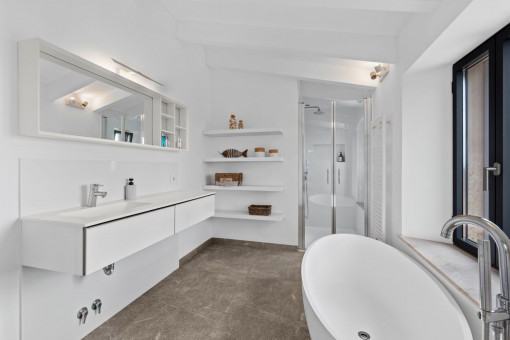 The stylish master bedroom with en suite bathroom, dressing area and magnificent views of the sea and Cabrera awaits you on the upper floor. A further bedroom with its own bathroom completes the space on this level.