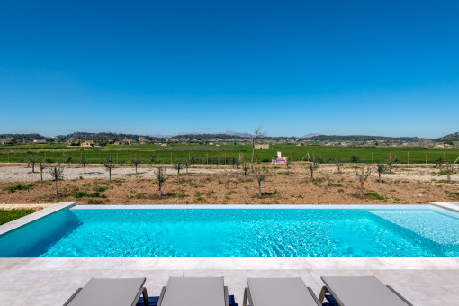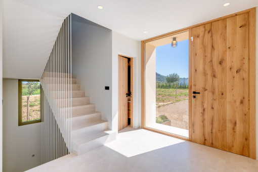 This high-quality finished dream finca is situated on a plot of approx. 17,000 sqm in a quiet, idyllic location and combines modern living comfort with Mediterranean flair. The property was built in an attractive L-shape and offers a constructed area of approx. 266 sqm, spread over two floors, spacious terraces, the pool area and a garage. There is also the possibility of extending the finca by approx. 50 sqm.