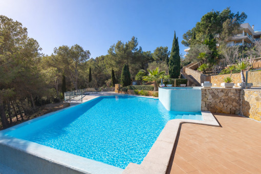 This high-quality first floor apartment is located in Sol de Mallorca, a sought-after residential area not far from the idyllic bays of Caló de sa Nostra Dona and Cala de Portals Vells. It is located in a well-kept residential complex with a communal pool and a padel court and offers a successful combination of comfort, privacy and modern facilities.